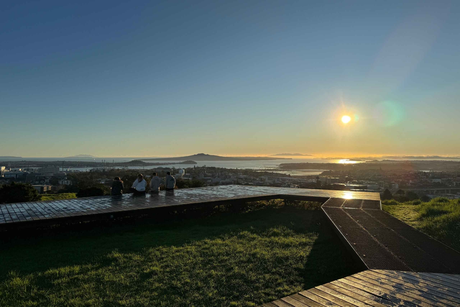 Start dagen med et ordentligt boost med en betagende solopgang fra toppen af Mount Eden – Aucklands mest ikoniske vulkanske udsigtspunkt.