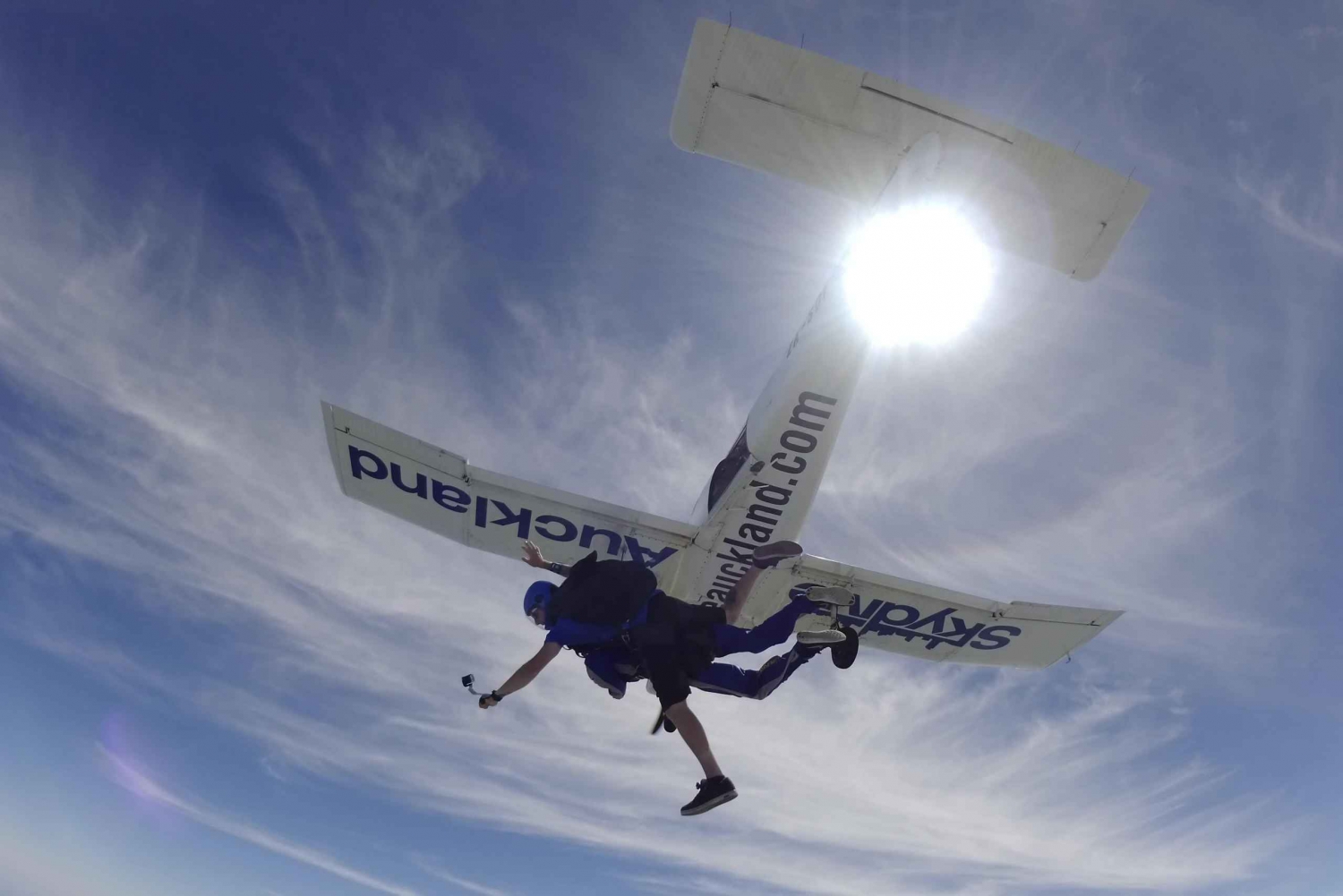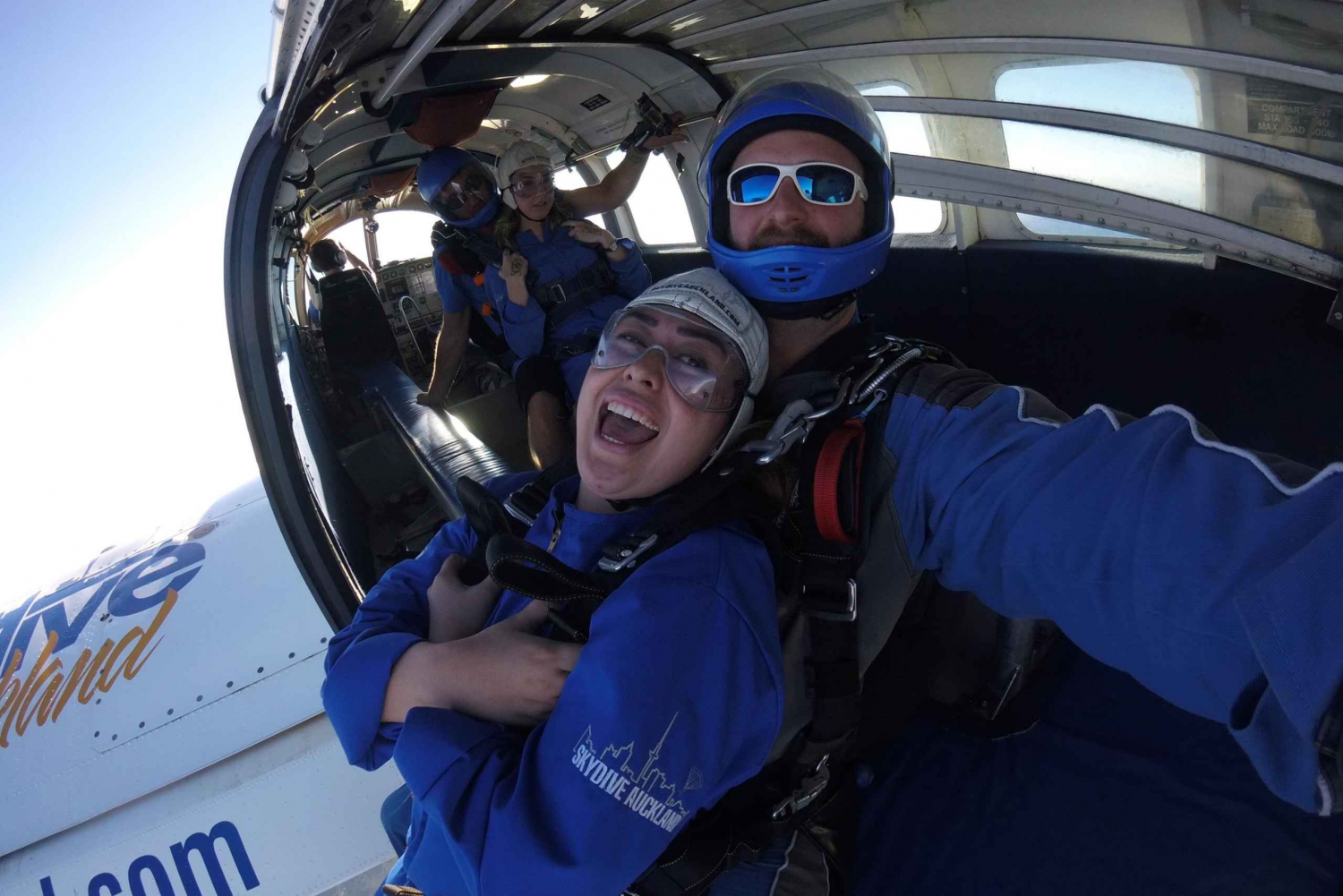 Genieße einen Rundflug über Auckland, während du an Höhe gewinnst. Wenn das Flugzeug eine Höhe von 18000ft, 16000ft oder 13000ft erreicht (je nachdem, welche Höhenoption du buchst), öffnet sich die Tür. Angeschnallt an deinen Tandempiloten fällst du bis zu 75 Sekunden lang im freien Fall vor der atemberaubenden Kulisse Neuseelands. Erreiche eine Geschwindigkeit von bis zu 200 km/h und es wird sich anfühlen, als würdest du fliegen. Genieße die Gelassenheit eines wunderschönen Fallschirms mit atemberaubenden Aussichten in alle Richtungen.