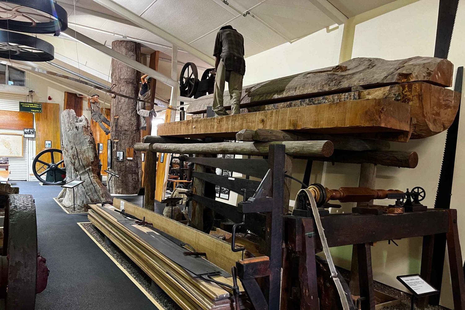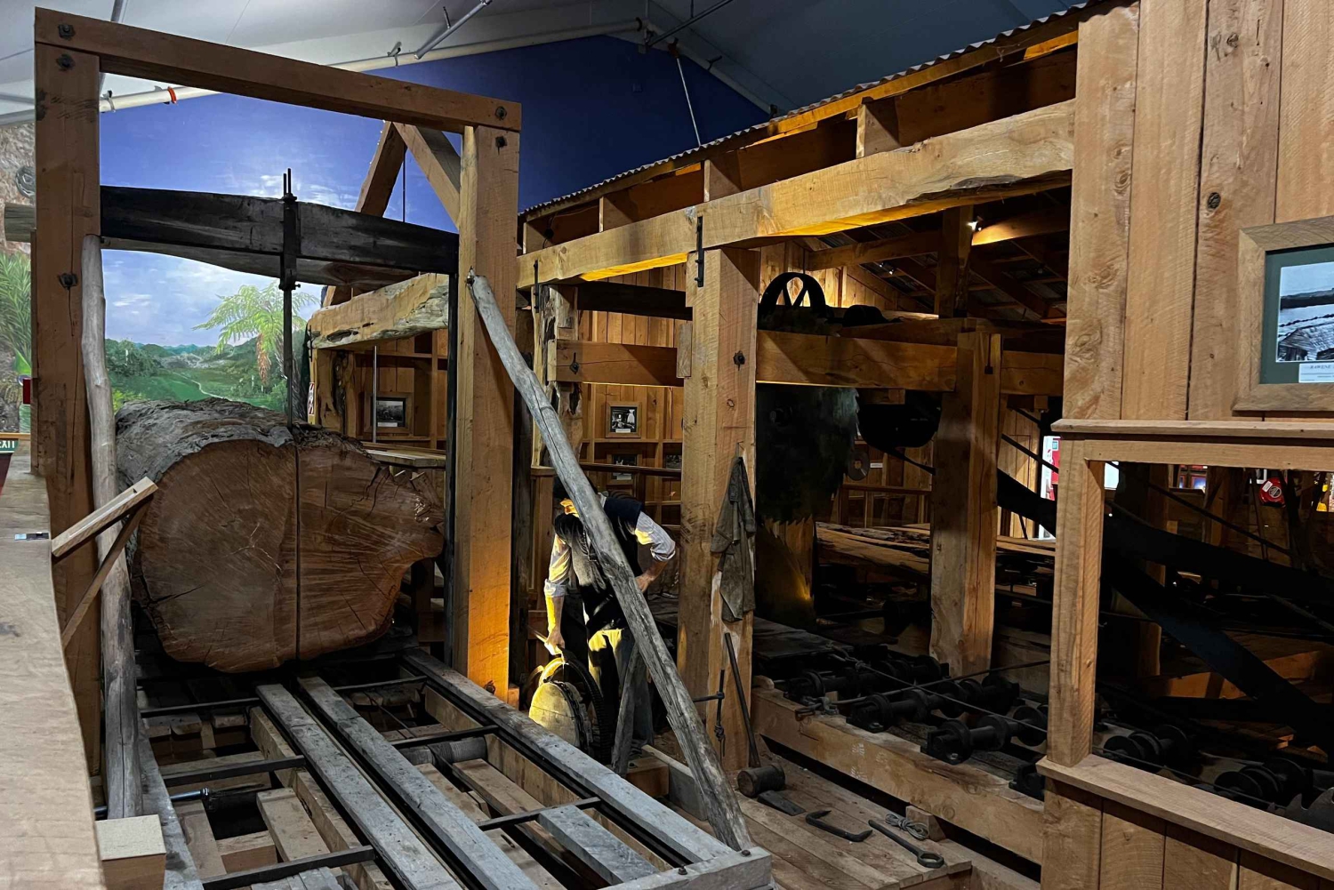 Witness the sheer scale of ancient kauri slabs and preserved trees.