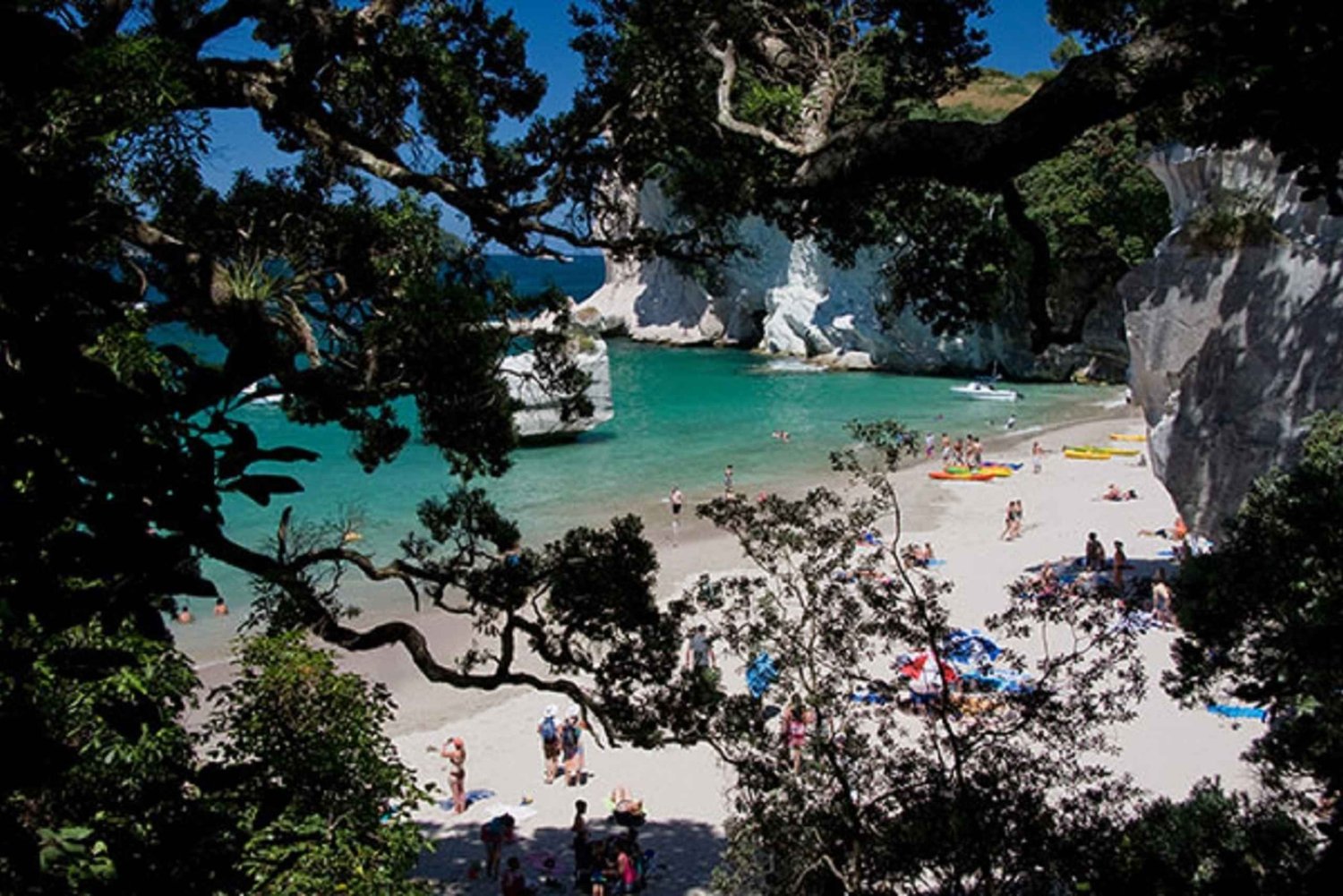 オークランドからの 1 日ツアーで、手付かずの白い砂浜、緑豊かな原生林、コロマンデル半島の息をのむような自然の地形を探索しましょう。美しい森を抜けて険しい海岸線までハイキングし、カセドラル コーブの景色に驚嘆してください。ナルニア国物語: カスピアン王子に登場するこの大聖堂のようなアーチ型の洞窟に近づきましょう。