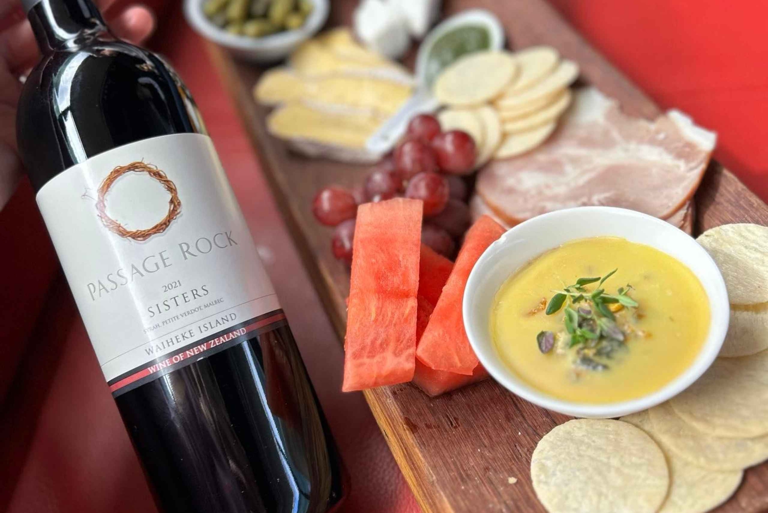 緑豊かな風景、豊かな歴史、活気に満ちた文化を巡る、他にはないワイヘケ島観光ツアーをご想像ください。豪華なVIPロンドンダンバスにご乗車ください。専門のソムリエが、このユニークなワインの試飲体験をご案内いたします。島を巡りながら、シャルキュトリボードをお楽しみいただき、美しい景色をお楽しみください。
